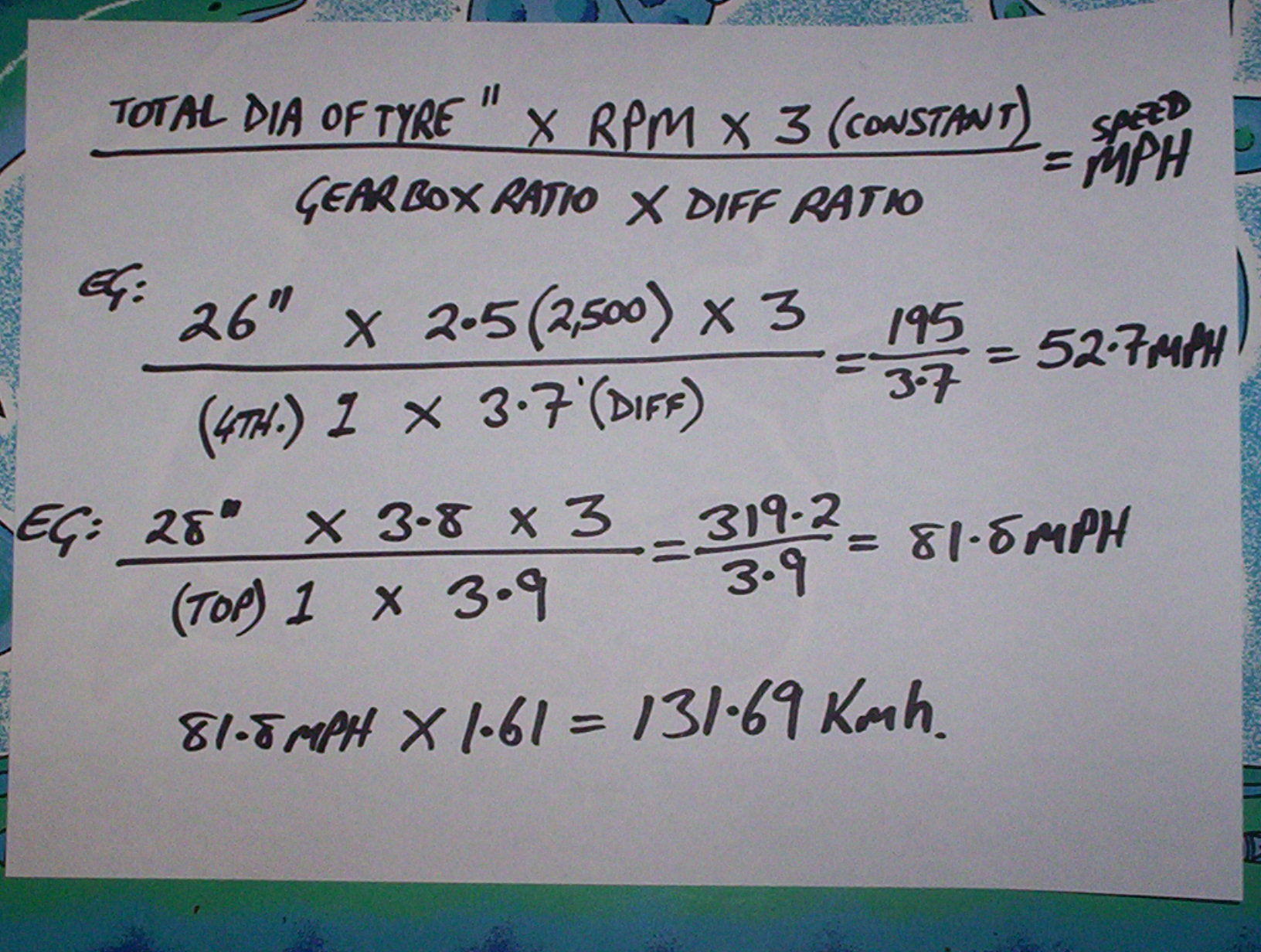 {USERNAME} wrote: {USERNAME} wrote: {USERNAME} wrote: Also, if I can slightly hi-jack this thread. I've got 3.45 LSD in mine at the moment, and I'm planning either 3.7 or 4.11, do they come out with 3.9? What fuel economy increase will I be looking at from 3.45 to 4.11? And how high would the revs sit at 100?, at the moment it's on what.. 2,000? 4spd 5ltr Here's how to work out speed verses diff ratio. yeah, maths and I don't get along much anymore, not since I thought I won lotto Bastard maths. So, if my EL 5ltr revs at 2000 at 100 with 3.45:1 diff gears, what will 4:11:1 diff gears do? On 18"s if it helps. I made that as easy as possible to follow. You need to measure the outside diameter of the tyre and it must be in inches (old school). This equation is 100% accurate when measured and worked out properly. You also need to know the ratio's in the g'box too.