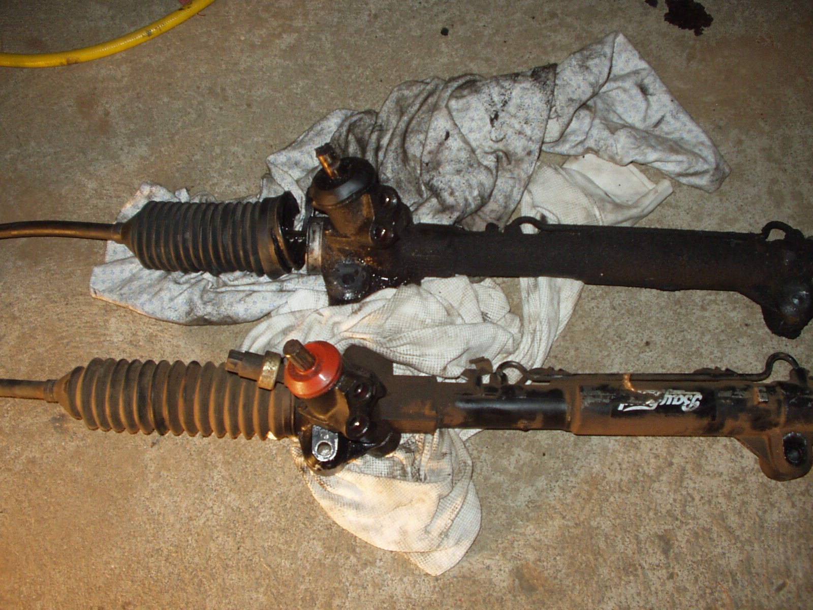 {USERNAME} wrote: by the looks of the rack head you may find the steering heavier but looks like it may fit. Hope you didnt go to all this trouble just over the rack boot! If it's a bit heavier i don't really care atm, car only has std 205's on it, and i'm saving a lot on a v8 rack. Take a look at the left end on the v8 rack, it's BENT. Worse than it looks in the photos. Cheers ToranaGuy