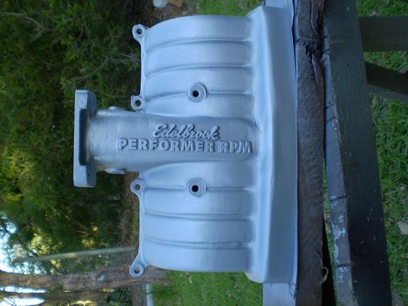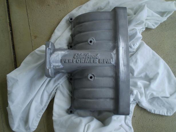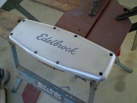 Grind off the edelbrock lettering and then bead blast it. Then powdercoat it silver.