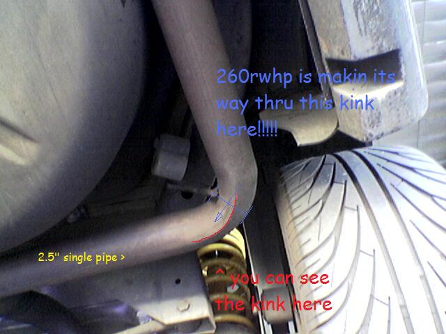 bear in mind, thats going thru a press bent single 2.5" exhaust where one of the 90degree bends has been bent more and kinked.. so equiv to a single 2.25" zorst. and while its running alrite its not really tuned properly. all in all not too shabby dont ya think?