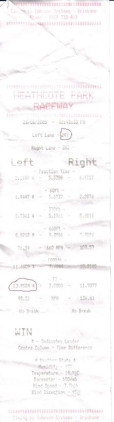 Excellant 60ft mate. If i could get some tyres like those on i might have run a 14.1. That 60ft is worth putting in the sig beside the 13.9!