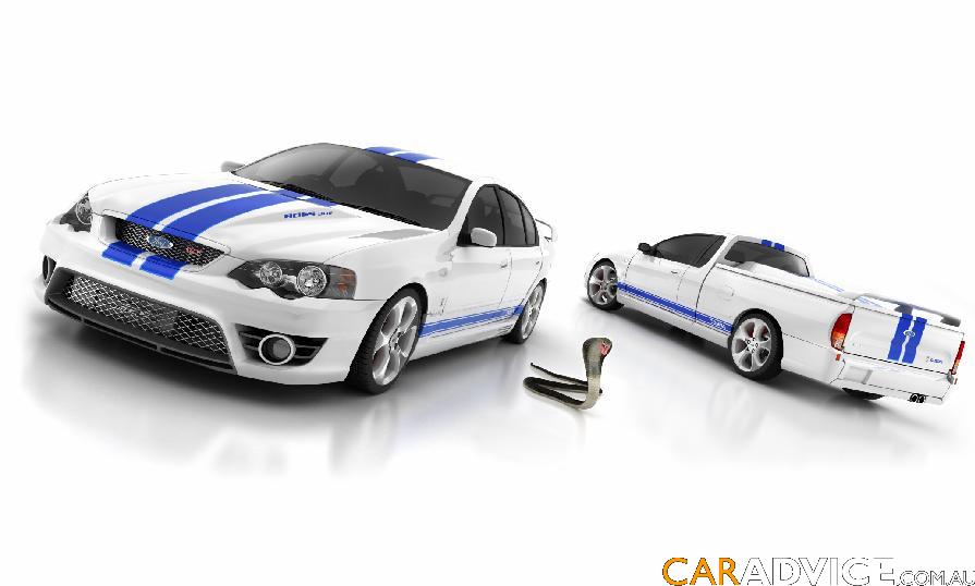 Sources inside Ford have today confirmed the rumours. From what we have been told, there will be 400 sedans and 100 utes. They will be powered by a 302kW BOSS V8 developing 540Nm. 0-100km/h times and any further enhancements over the standard GT is currently unknown. Of course all 500 will only be available in white with blue stripes and cobra badges on the side (picture above is supposedly the Cobra). Already out on ebay http://cgi.ebay.com.au/FPV-GT-Cobra-sed ... dZViewItem