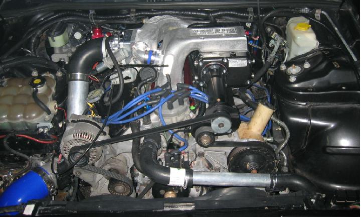 But I'm thinking it might fit on the side under the alternator where the idler pulley is now.. If not on the side then a custom or modified lower inlet and bang it on top down the middle... I know there's a bloody great dizzy in the way. Seeing as I'll use my MegaSquirt to power it I might get rid of the dizzy and use coil packs for spark. Take a look at some of what this guy has done {DESCRIPTION} After dooling over that go back to the home page {DESCRIPTION} and check out the Twin Supercharged T-bird... Looking at how they went about doing their cars I thought that doesn't look too hard But first I have to get my double garage up so I've got some where to do this crazy s**t..