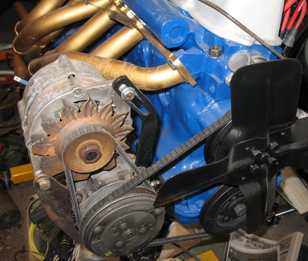 Good idea about the use of the bolt on pully etc but now looking at the twin "V" pully on the Air Conditioner compressor. Could I run one belt between the water pump, harmonic balancer and compressor. Then run the alternator off the other "V" of the compressor. Need to make up some fancy brackets and adjusters. May have to re-locate the right hand horn from the right side of the engine bay as I will need to get the compressor as low as possible. The altenator - compressor belt will be short but all should fit in. I am putting on extractors so may need to put a heat shield between the alternator and the no. 1 cylinder exhaust - even with the ceramic coating on the extractors. Ahhhhh next weekend with all this weekends maxed out brownie points I may get in 2 whole days.... Cheers Steve