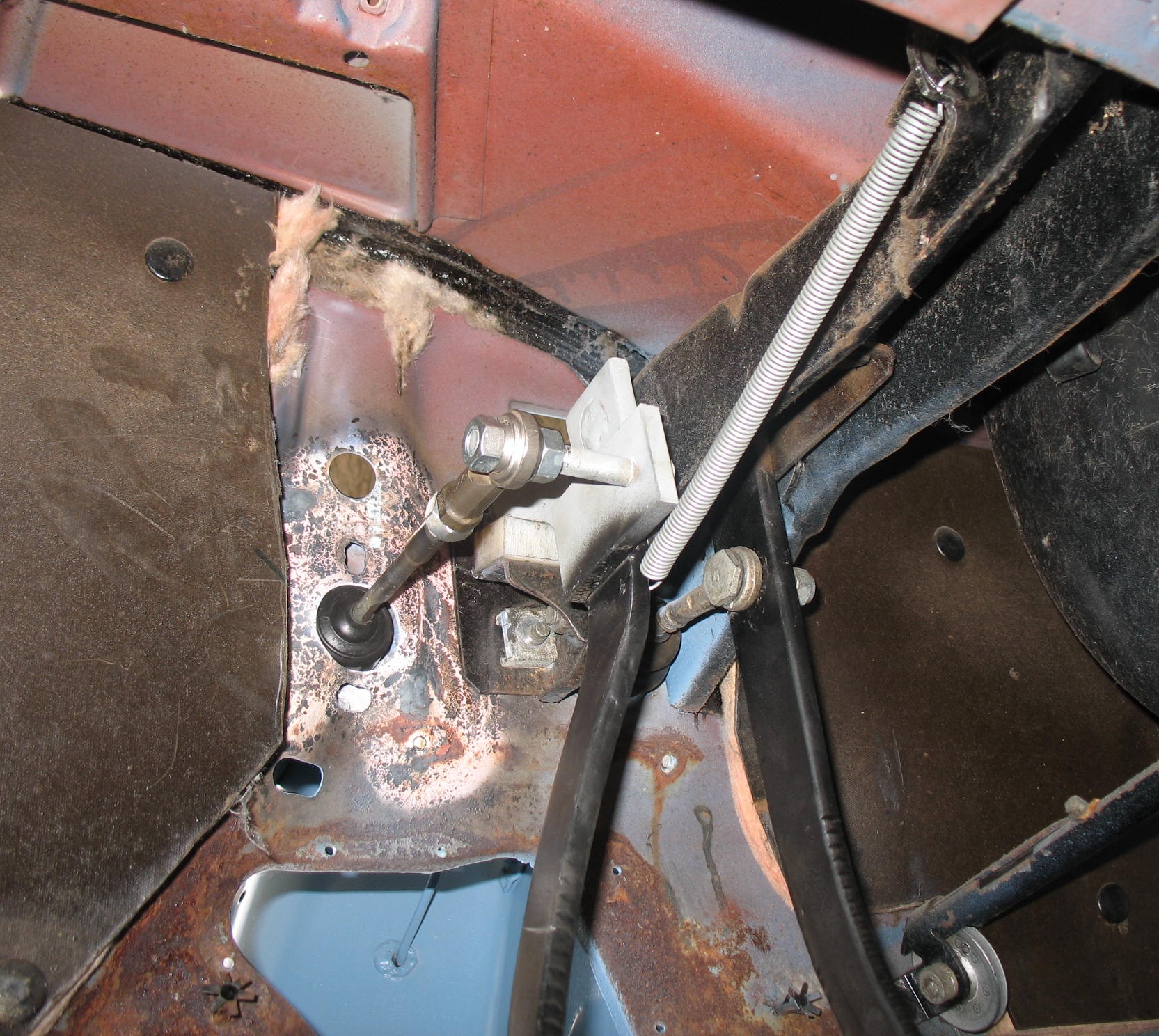 Not a real easy job but more or less straight forward. Had to fabricate a mounting block. Did this out of 6mm plate so I could tap the mounting holes. Bit of welding and grinding. Positioned for welding by using the mounting and bolting from the inside. Welded into place and cleaned up and painted. Modified clutch pedal to incorporate a high tensile bolt out the left side of the pedal arm after removing the old pivot point from the right side of the arm. Lengthened the hydraulic cylinder actuator rod with a thread end and used a rose joint to make the connection. (also gives adjustment.) The hole under the clutch slave cylinder is for the accelerator linkage. The hole above the cyclinder is for the speedo cable - may have to blank and move over a bit... Need to make up some new hydraulic pipes for the brake and clutch and another job finished. Photos. Before - The mechanical clutch push rod comes out above the steering column. Locating the mounting block ready to weld. Finished hydraulic cylinder ready for pipe up. Under the dash.