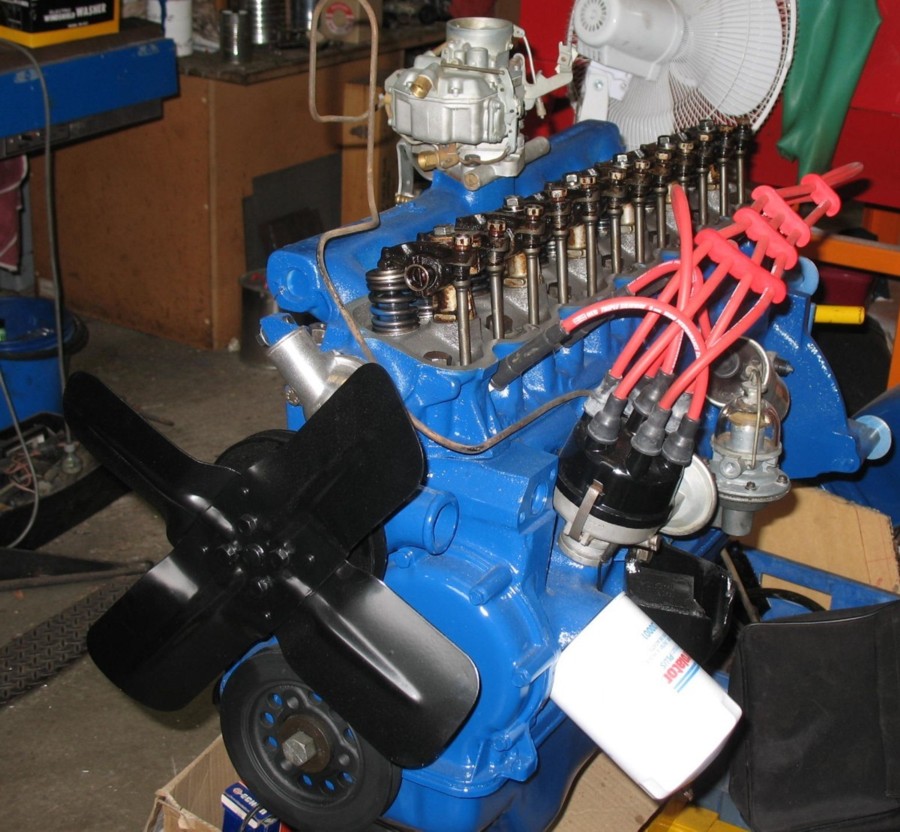 Had a good weekend and got a bit more of the engine bay sorted out. Made both the engine bay wiring harnesses. Currently they are covered in heatshrink but will have a final harness tape wrap to 'look the part'. Fitted the windscreen washer bag but with the electric motor instead of the manual foot operated pump. Overhauled the carburettor including bead blasting all the parts. Installed carburettor. Overhauled the distributor and installed with new cap, rotor and leads. Got a pile of bits back from the powdercoater and put on the fan, fitted the battery box, etc... Waiting on the inner lower control arm bushes and then can put the complete front suspension back together with the new shock absorbers. have already put in the new top ball joints and idler arm bush. Need to overhaul the steering box next and get it back in so I can get it back on the ground to move it about. Regards Steve