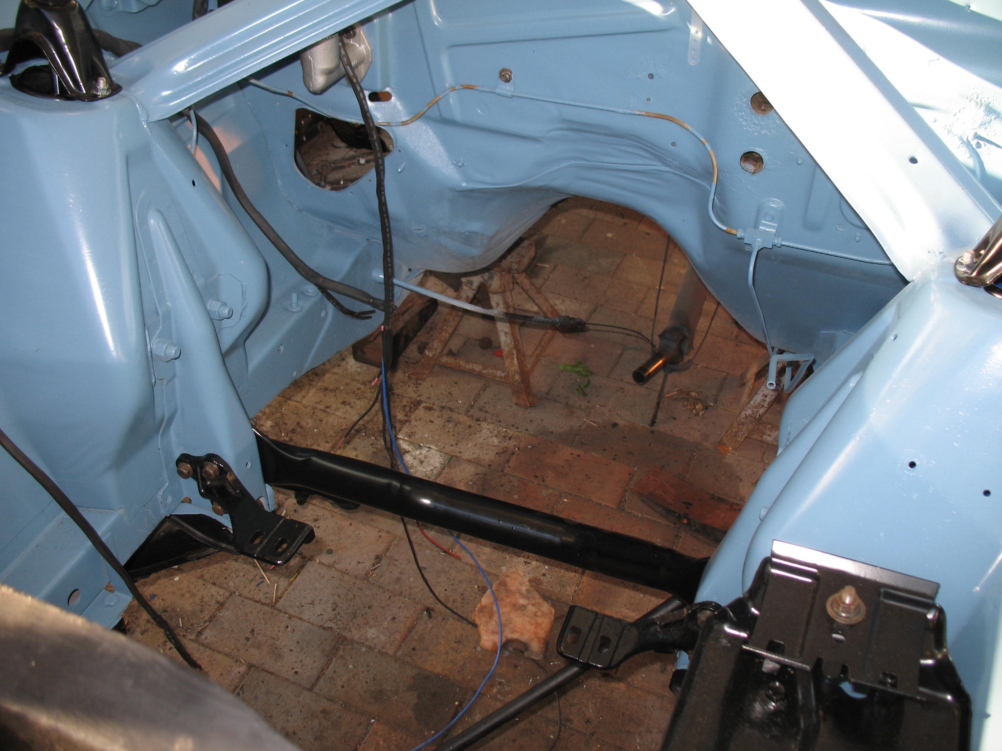 Sorted out the XT gearbox. Unmantled it and mantled it up again. look good inside. New gaskets, new front seal, new extension housing seal. lots of cleaning, etch prime and paint cast iron bit (Ford engine blue), beadblast aluminium bits, Loctite 'purple' stuff in the joints. Replaced the inner lower control arm bushes. That is where the clunk was coming from, no rubber left in the LHS. Reinstalled springs minus 1 coil with new Munroe shock absorbers. Fitted cross brace to the engine compartment with the engine mount brackets. Thinking of putting a Smiths under dash Air Conditioner. Managed to find 2 under dash units, 2 compressors and 3 condensers in 'the shed'. Next is to work out how to drive the compressor. Thinking of using the old harmonic balancer, fitting in a rigid centre and using the three centre 'puller holes' of the new harmonic balancer to drive it. That would in effect make it a double pulley. The problem is that the A/C drive pully would be direct off the crankshaft, not cush driven via the harmonic balancer pulley. Anybody see any problems with that??? Cheers Steve