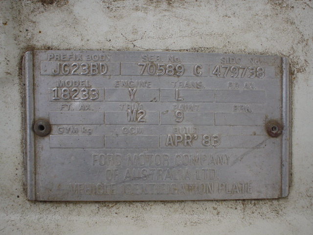 {USERNAME} wrote: Hi, Can anyone tell me how or where I can find info on Identifying the Engine codes on an XE Falcon Vin Plate. I have looked at a few sites but all omly seem to List the GTs up to XB. I am Buying an XE Roller and want to know what engine it was originaly. I think the engine code is Y car has nine inch diff in it and Trans code is L which on other falcons means Manual 4 speed. Has 5.8 badges on front guards but anyone can put them on. Any help much apreciated. Regards Darryl... Engine code for V8 351 in an XE is 'T'.....4sp is is 'L'. engine codes for XE are as follows : L = 3.3 med CR NSW V = 3.3 high CR X = 4.1 high CR NSW W = 4.1 high CR B = 4.9 high CR NSW P = 4.9 high CR T = 5.8 high CR. Model codes are as follows : 18233 = GL sedan 18243 = GL sedan Taxi 18237 = Fairmont sedan 18238 = Fairmont Ghia sedan 18263 = GL wagon 18267 = Fairmont wagon 45271 = std ute 45273 = GL ute 45281 = std van 45283 = GL van Gearbox codes are as follows: N = man 3sp col change L = man 4sp flr change K = man 5sp flr change R = auto 3sp col change B = auto 3sp flr change Thats all I got.