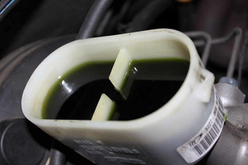 - Can see two lines of leaking brake fluid (where the brake booster and master cylinder meet)