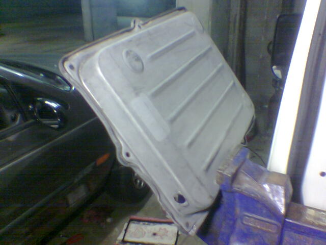 Heres a basic step by step explanation of what I did to install a drain fitting onto my EF transmission without welding a nut on. I know what you are thinking – you should change the filter with the oil! Well, for those of you who would just like to routinely check the condition of your oil, and change it slightly more regularly without having to make a huge mess in your apartment basement, this mod may be for you. I purchased an appropriately sized fitting from Enzed which has an integral O-ring seal with a washer surround. This particular fitting is perfect for flush mounting onto a flat piece of steel with just a round hole drilled, and no need for the steel to be threaded. I also obtained a nut to fasten to the larger end of the fitting, as well as a cap to seal off the outside. The fitting is designed so that it can be tightened as much as you like (short of stripping the threads!) and you will never be able to extrude the O-ring, as it is surrounded and backed up by the washer. Be sure to purchase this style of fitting if you are going to do this mod! Fitting your fitting! ïŠ 1. Remove and clean your transmission pan. Set aside the magnet that you should find inside, and don’t forget to put it back in later when you refit the pan! 2. Mark on your pan where you are going to drill the hole. Placement is not absolutely crucial for the location I chose, as it is located in a spot that is clear of the valve block and any other internals. This location is on the front drivers side of the pan, facing forwards. Do not attempt to put it on any other corner, as you will find the cover will not go back on if the fitting is in the way of your selector sprocket or valve body! You will need to carefully drill out your hole so that the O-ring will be sitting on a flat surface of the pan, and make sure you take into account the nut that will be placed on the inside of the pan later on. Leave enough room for the nut, also taking into account the gasket lip that will overhang the inside of the pan later on. You may want to put the gasket on now, and roughly place the nut where you intend on drilling the hole. Check and re-check your markings, as you only get one shot at this! (see pics). If you do happen to stuff up the location of the hole after you have drilled it, you will simply have to file the hole out by hand. 3. Start with a pilot hole and drill through the pan in the spot you marked. Move to progressively larger drill bits until your fitting fits snugly in the hole. Avoid going straight to the drill that looks like the correct size – I drilled to a much smaller side and filed the rest out by hand with a round file. There is not much margin for error if you make the hole too big, as the O-ring is very close to the thread diameter. Don’t make it too large or your o-ring may extrude between the threads and the pan hole! 4. You may find you will have to slightly bend the lip of the pan to get your final drill size for the fitting. You can also file a round curve into the pan lip, but don’t go too far – the lip gives support to the rigidity of the pan, and should not be bent more than 45 degrees from its original angle. Once you have the fitting in the hole, you can bend the lip back as much as you need in order to be able to fit the end cap on. 5. Place the nut on the other end of the fitting and do it up tightly. The next step is optional, but I regard is as essential. Depending on what thread pitch fitting you have sourced, it is recommended to drill through the fitting and place a split pin so that it can never come loose. If you use a washer with the nut, this should not happen, but better to be safe then lose all your fluid. 6. Drill a small 2-3mm hole through the nut at an angle so that the hole does NOT pass through the fluid orifice. Be sure to clean out and remove any swarf (drillings) from the edges. Place your split pin in the hole and bend over. Also, bend the head over if it protrudes past the top of the pan, so that it will not interfere with the sealing surface of the transmission case when reassembled. 7. Making sure your pan is clean, place the gasket on the pan and make sure the inner lip does not interfere with the fitting nut. If it does, remove a small sliver of the lip that hangs over the inner side of the pan. 8. Make sure your pan is clean, the fitting is tight, and the head of the split pin (if fitted) is not above the sealing surface. Be sure there is no swarf hiding in any corners and clean the mating surface on the underside of the gearbox.. Don’t forget the magnet! (see pics) 9. Torque up the pan. Make sure the pan is sitting flat while you torque it up. Place the end cap on the fitting and do it up tight. Use a backup spanner on the fitting to avoid twisting it and ripping the O-ring. Remove the filler plug on the transmission and use a suitable pump to fill up the box to the correct level. I bought a cheapo “chocolate topping†style pump from Supercheap, and it did the job ok. You will need some small hose to go from the transmission filler hole to the tip of the pump. Do up the fill plug tightly. 10. All done! Check for leaks, go for a test drive etc, and check for more leaks. Enjoy easier and more regular oil changes and a prolonged box life.