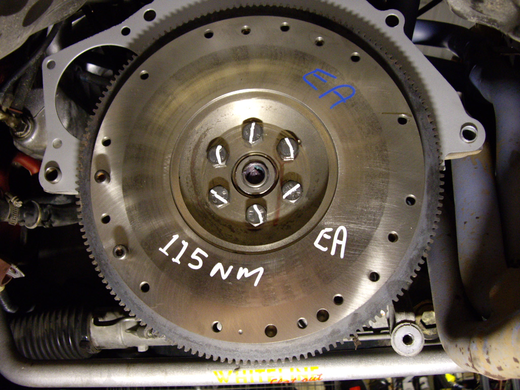 {USERNAME} wrote: hey guys, we pulled a t5 out of an ea the other week and it's going into a el this weekend, there is a slight lipp on the fly wheel, maybe 0.08 but it's able to be felt with your finger, would this need machning out of would it be fine to leave it as is? Best to machine it and if possible balance. If you plan on putting a new clutch on it, you either need to get a 3 bolt clutch kit or you can get a 6 bolt clutch kit and drill/tap 3 more mounting bolts. Not sure how well it would be balanced after it is drilled though.