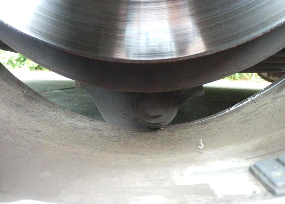 My son just bought an AU3 Forte wagon (keeping the family all Falcon). It was already lowered with lowering blocks when he bought it. Now something attached to his leaf spring plate is touching the inside of his wheel. My EF wagon has nothing like it, and I'm struggling to identify it. Could the lowering blocks be causing the problem? Does he need to go to smaller lowering blocks? Thanks for your help. Attachment: Attachment: