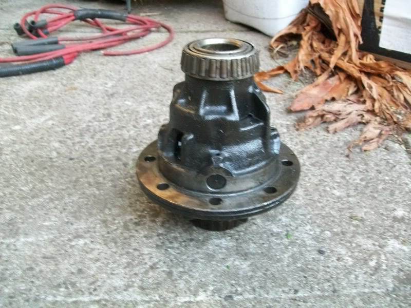 Under the hat on the back of the diff... There is a carrier inside... Thanks to a for sale thread here is a carrier out of a non LSD: Attachment: Non at this view the only difference between the LSD and non LSD carrier is the shape varies slightly... Now you see the big holes around the... bases of it I suppose you'd call it... There is like 6 or 8 of them or something... This is where you bolt the crown wheel of whatever ratio you like to it... bit 3.08, 3.23, 3.45, 3.7, 4.11's whatever... The centre (carrier) is the same regardless of the ratio... The carriers do not come in different strength (unless EA was diff with only 2 pinion 25 spline?) But for EBII and ED onward (to AUI) with a 4 pinion 28 spline diff a non LSD centre is a non LSD centre... No ratio differences, not strength differences... 1 size fits all As mentioned, you bolt whatever gears you want to it... Or if you wanna do it yourself and save heaps from a diff place you can even leave the original gears there and replace with a Lokka yourself, reassemble the same and nothing moves... Now this carrier (pictures above) comes apart in two halves... Inside are 6 gears and 2 cross shafts and 2 shims... there is one gear on the end of each axle shaft (where the axle slides into) and then 4 gears which rotate around between those 2 other gears... The 2 cross shafts (actually in three pieces but don't worry about that) are held in place by 3 roll pins (from my understanding?) these are then slid out of the carrier (you can see the end of one cross shaft in the pic) and the 4 gears come out... Now you have 6 gears, 2 cross shafts, 2 shims and some kinds of centre for the cross shafts removed... you install (using the original shims) the Lokka, take some various measurements to enaure it will unlock... and then re-install those cross shafts and place the two halves back together... bolt whatever ratio crown wheel to it and re-insert back into the diff housing... (of coruse you have to change the pinion gear as well if your changing ratios... I hope this makes sense because if it doesn't I don't know how else to explain it If you download the instructions and visit the boosted forums threads I listed previously they have other pictures...
