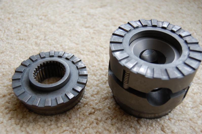 To explain how it works here some pics... Firstly a couple of general pics... Attachment: Attachment: Ok... You have to picture this to understand... Tail shaft drives pinion -> pinion drives crown wheel -> crown wheel drives centre housing -> centre housing drives cross shafts -> cross shafts drive Lokka Now when you see thisI have compressed the springs (using an aerosol can) and this is how it resides inside the diff when under no drive Attachment: Now when you gun it the cross shafts turn into the inner gears and work like cams forcing the inner gears to mesh with the outer gears locking the wheels together... When you back off and corner the Lokka drives the inside wheel (unlike a conventional SS) and allows the outer wheel to over-speed... A Lokka while never allow a wheel to under-speed only over-speed... You have no drive and the traction combine with speed difference of the wheels allows this gadget to do this: Attachment: therefore one wheel (inner wheel) remains locked and the other unlocks and shounds like a ratchet when these gears slip over each other... This is my understanding of it anyway... I'll find out what its like when I get it in... Hope it helps... Cheers...