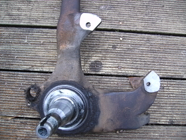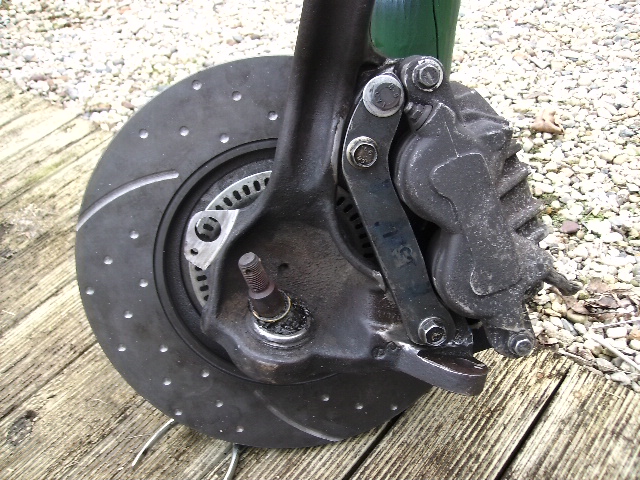 Who did your uprights Snap? I did Did you have to space the bracket to get the caliper centred? Or space the caliper? Or you managed to get the right thickness machine from the rear of the upright to line it all up? I essentially used a few different thickness cutting discs - cut off the hooks, fitted an old disc rotor to use as a datum to get the front faces true. Then you go off those front faces with a vernier to grind your backs. The bottom mount needs a washer to get the caliper bracket true, the upper caliper mount has an old suspension crush tube cut to size.