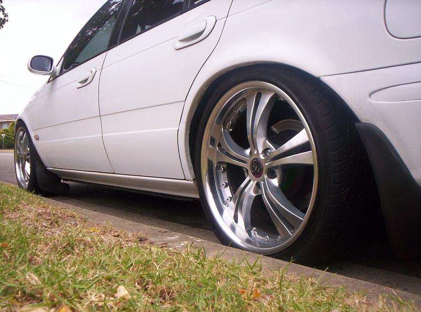 mine actually sits just under level now, back sits a little lower, and with full tank of petty and 5 boys in te car, yeah looks tough as, very low in the a***. but with the 17's its not to bad, with 15" chasers and say 215*45*15 it would be low as buggery