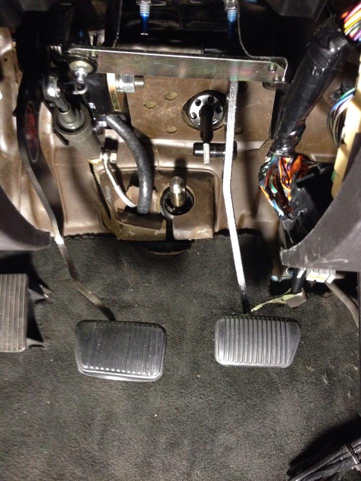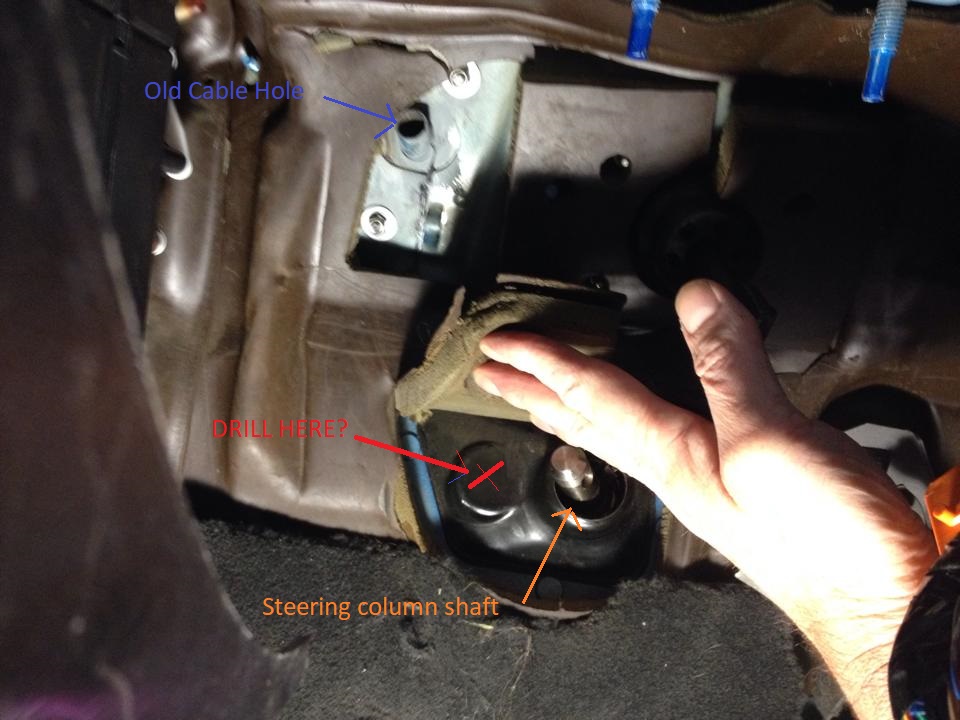 I am fitting a Mal Woods underdash conversion to my T3 TS50: https://malwoodauto.com.au/product/ford ... -assembly/ Has anyone fitted one of these to an AU? (These originally use a cable clutch). I have a few problems: neither the rubber hose for the reservoir nor the braided line for the slave cylinder fit thru the firewall hole used by the original cable. Only option I can see is enlarge the old cable hole for one of them, plus make a new hole for the other ... which seems like a bad idea. There does seem to be a spot intended to be a hole, next to the steering column shaft. See pic attached. Is it safe to drill through this? The kit comes with 2 grommets that seem like they are intended for this purpose. Other issue is mounting the reservoir. I thought I had solved this by fitting the supplied bracket in place of the alarm siren ... but then found it sits too high, does not clear the bonnet.