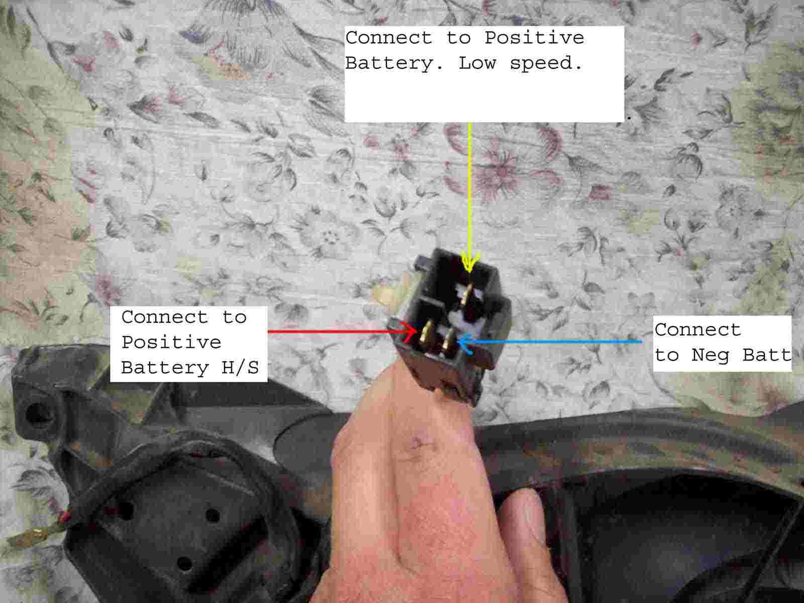 Here is a picture I had taken a few months ago of the connector. EF 2 speed fan. If using in an EL, just ignore the low speed connection (yellow arrow).