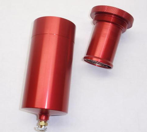 The HMS setup works as follows - With vacuum applied, as the vapour passes through the stainless filter in the can it slows & cools and drops out the oil into the resevoir. The undercuts on the inside walls of the can prevent the oil being sucked up the sides & then into the manifold.