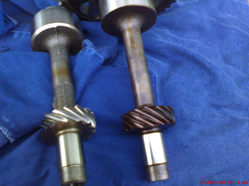 Finally got a chance to remove the timing cover on the el today. Rotating emgine with the cover off I noticed the aux shaft was binding slightly. Released the dizzy clamp and the shaft freed up. Took the shaft out and the damage to the cog was very bad. The teeth are so thin and worn that they are folding over slightly at the end. Luckily tho the surfaces of the shaft where it runs in the block show no damage at all. So it looks like it was caused by my aftermarket dizzy when the ford one failed. Had the shaft checked and measured by my engineer and he agrees that the motor will be fine with a new shaft. Just gonna check how the dizzy runs against it next time! Was very lucky I think!