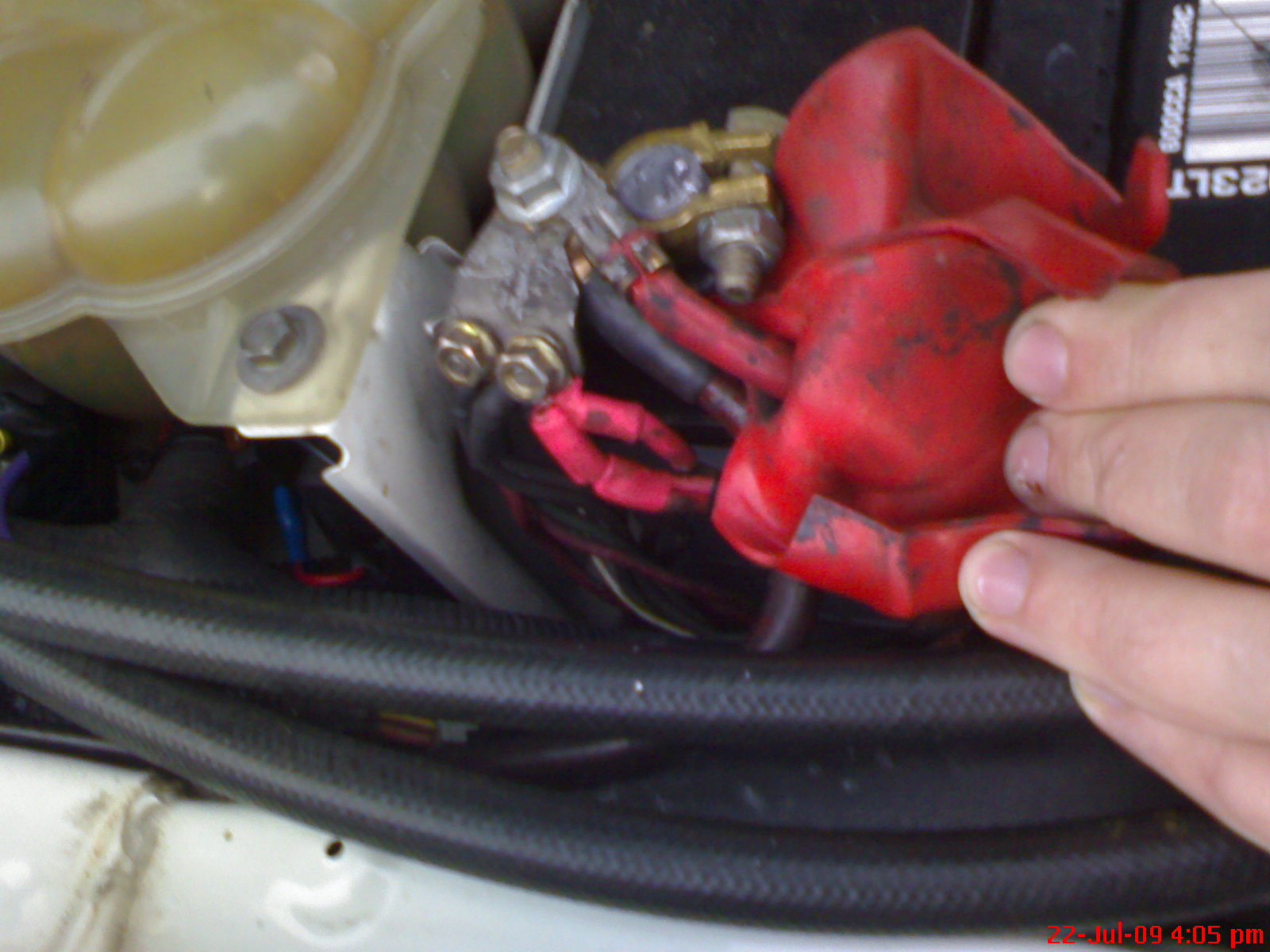 did you do it up before trying to start it?? here are some closer pics of mine.. i have a few extras on mine the extra thick one is power to the amp and the 2 smaller red ones are my thermo fans but the rest are std... Attachment: Attachment: