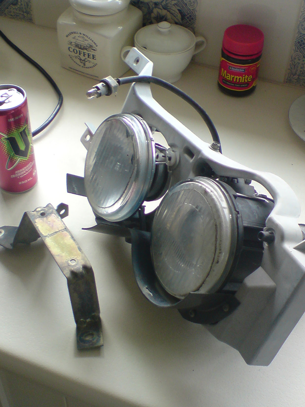 Here i have for sale a passengers side twin light to suit EF/L XR. It's complete with bracket etc. No chips out of it, looks pretty tidy. I had intended to get both sets of head lights and fully reco them then sell em off, but some bastard beat me to the other one. I know nothing about twinlights or what they are supposed to look like exactly, so all i can say is, They work and the picture describes it all. It has had a small crack repaired on the top mounting bracket, still solid though There is the "test" tag on the rear loom, says **/**/98, so it's obviously off an EL, 98 model. These are on eBay, link is: Thought i would post here so i can post more pic's without paying ebay fee's Last edited by XFWAGON on Fri Sep 18, 2009 12:05 pm, edited 2 times in total. |