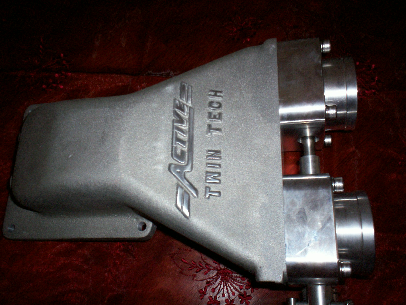 1st-active twin throttle set up to bolt up on 4bbl intake manifold,twin 65mm throttle bodies,tps mount,brand new- $350 (i paid $450)