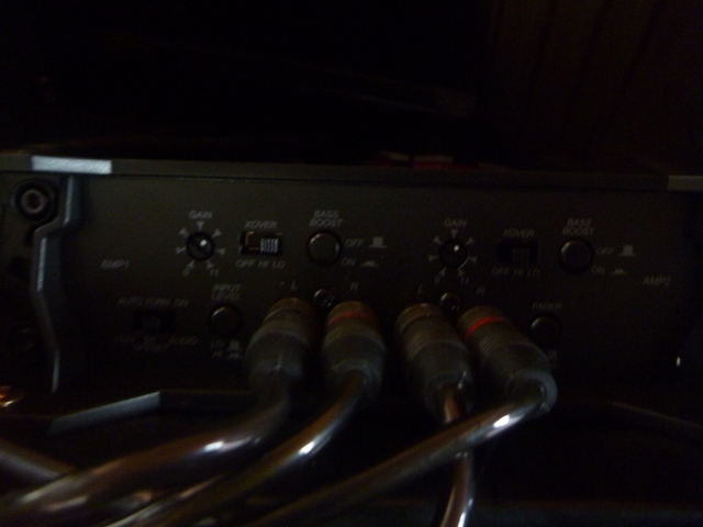{USERNAME} wrote: {USERNAME} wrote: Turn up your GAIN, the little knob thing on the top left. Yeh! Do that!! Which channel is the sub running off? I'll assume its the one on the right. To set the left side up to run speakers turn off bass boost, turn xover to off, input level should be on low (assuming its not just a volume boost, and low = rca, high = speaker line). I cant see what the bottom left switch is for.... For the sub on the right channel : Without knowing what the xover settings are actually at, I'll assume that lo is where you want it. Turn bass boost off, set fader to the centre so it isnt actually doing anything. Do you have the sub bridged? CH3 pos, CH4 neg? Try this and post what happened. yes sub is bridged as you state, and is working now, but i have the fade set to on, there is no centre just off or on however still no sound from the rear speakers only a hi pitched tone botton left switch is for the auto turn on selection ie +12v, dc offset and audio i appreciate the help cheers mick |