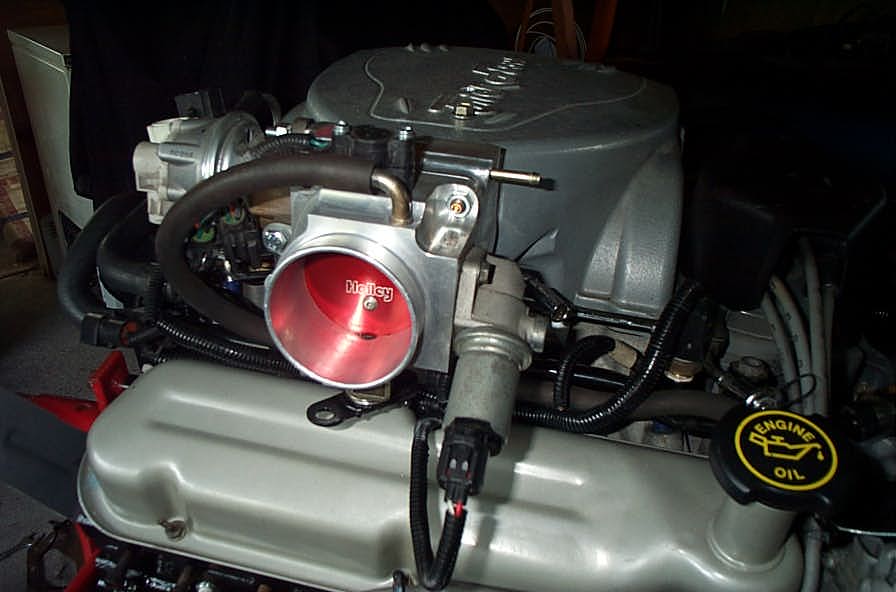 Here is a 75mm Holley Throttle Body to suit a 5.0 in good condition. It is just the throttle body, other items in the picture are not included. Price is $150