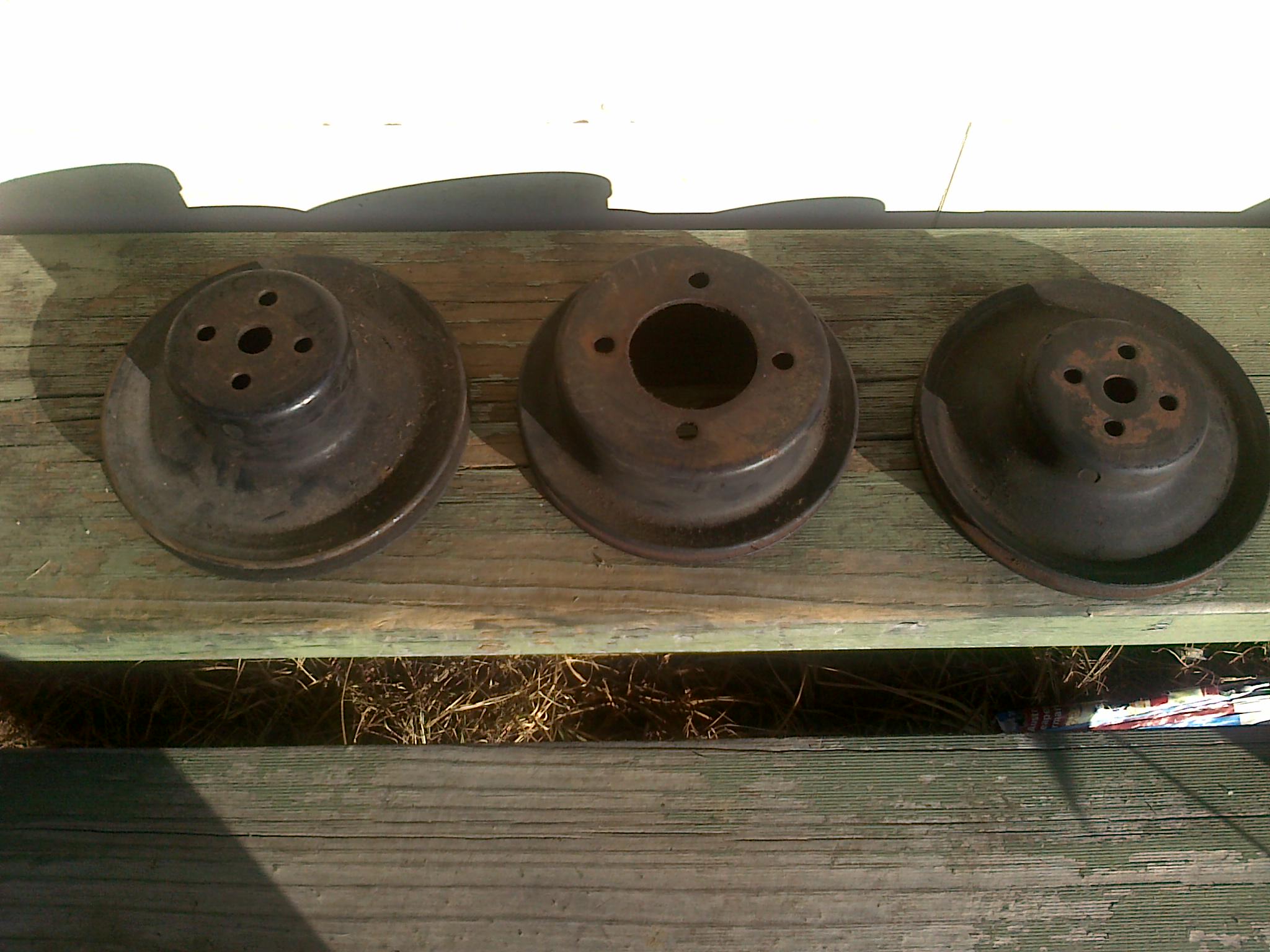 i have these laying around - came of my 351 Fairlane (now has gilmer drive) :roll: - not sure which ones are which, obviously the bottom pulley is the 4 hole one, but, do you need the tall or the short water pump one?