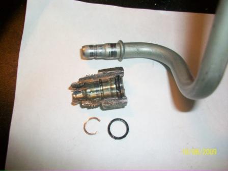 Ford sell replacement nuts with the seal and a small steel o-ring inside for about $15. To salvage yours , you'd need to carefully hacksaw the existing nut off. The alternative is to buy a replace hose assembly. |