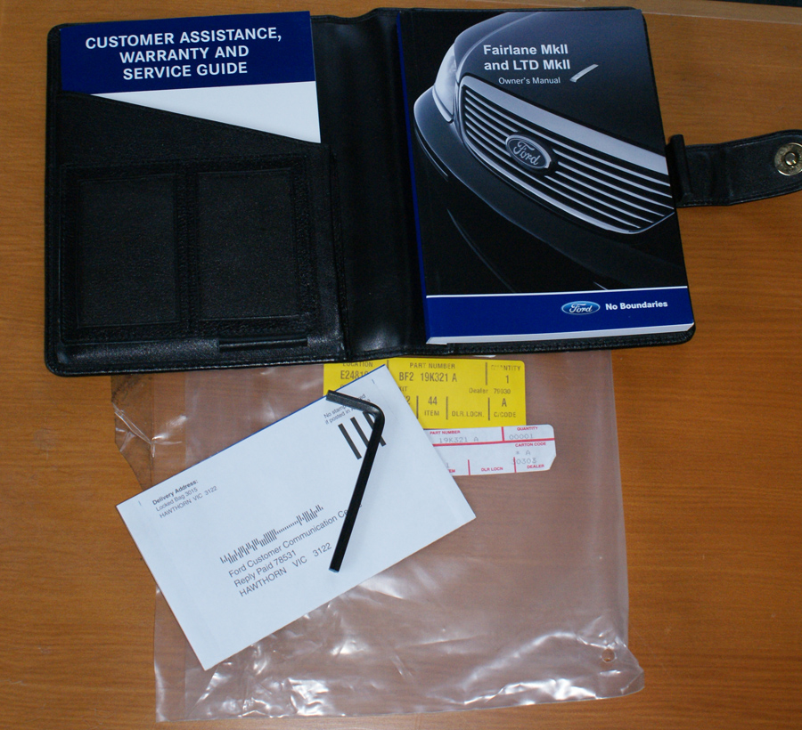The wallet has the LTD emblem embossed on it, and comes with the owners manual, service and warranty manual, warranty mail in and hex key.