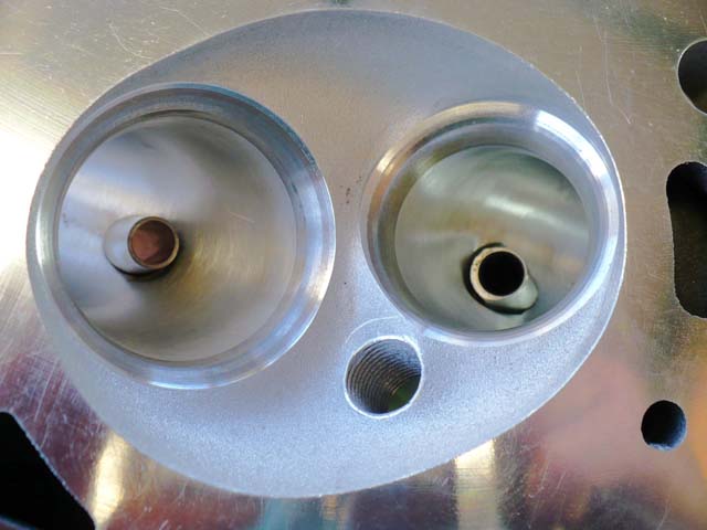 Don't taper the chambers out to the bore line you will loose power due to poor combustion. Read up on "quench" before you start, it is very important to the combustion process.