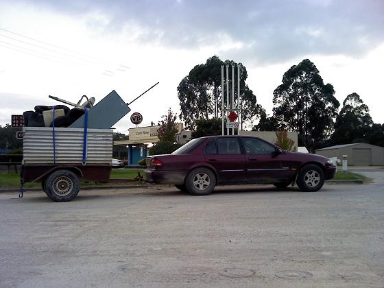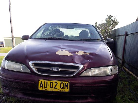 The fairmont moved most of my stuff before the full-size male grey kanga decided to jump out of the bush and right in front of the car. There was zero warning because the bushes were only a metre or so from the edge of the road. Lucky i was only doing about 40 to 45km/h otherwise i may have ended up with him in my lap. One millisecond there was road in front of the windscreen, the next it was all kanga. God damn wish it was comprehensively insured. He went over the roof, and i later found the interior light cover had popped off. Poor chap.