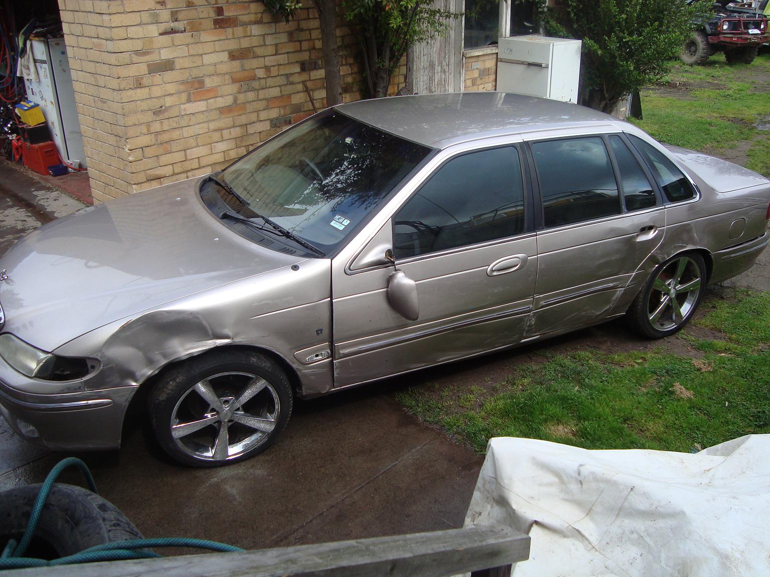 ford nl fairlane 1997. 148000 km's. 6cyc auto. 18" anz rims with good tyres some gutter damage. brand new exhaust system and raidator. damaged to the left hand side needs doors and guard and quater repaired. Drivers guard is damaged but another guard comes with the car. Bent bottom front control arm. Parts that i have to repair are::: passenger mirror, both guards, steering rack, L/h indicator. Has all fairlane options....leather seats (slight wear to drivers., wood grain on the door trims, wood grain t-bar, crome handles, cruise control, climate control, full electric windows, Stero with stacker (factory 1) rear air shocks with compressor (factory)