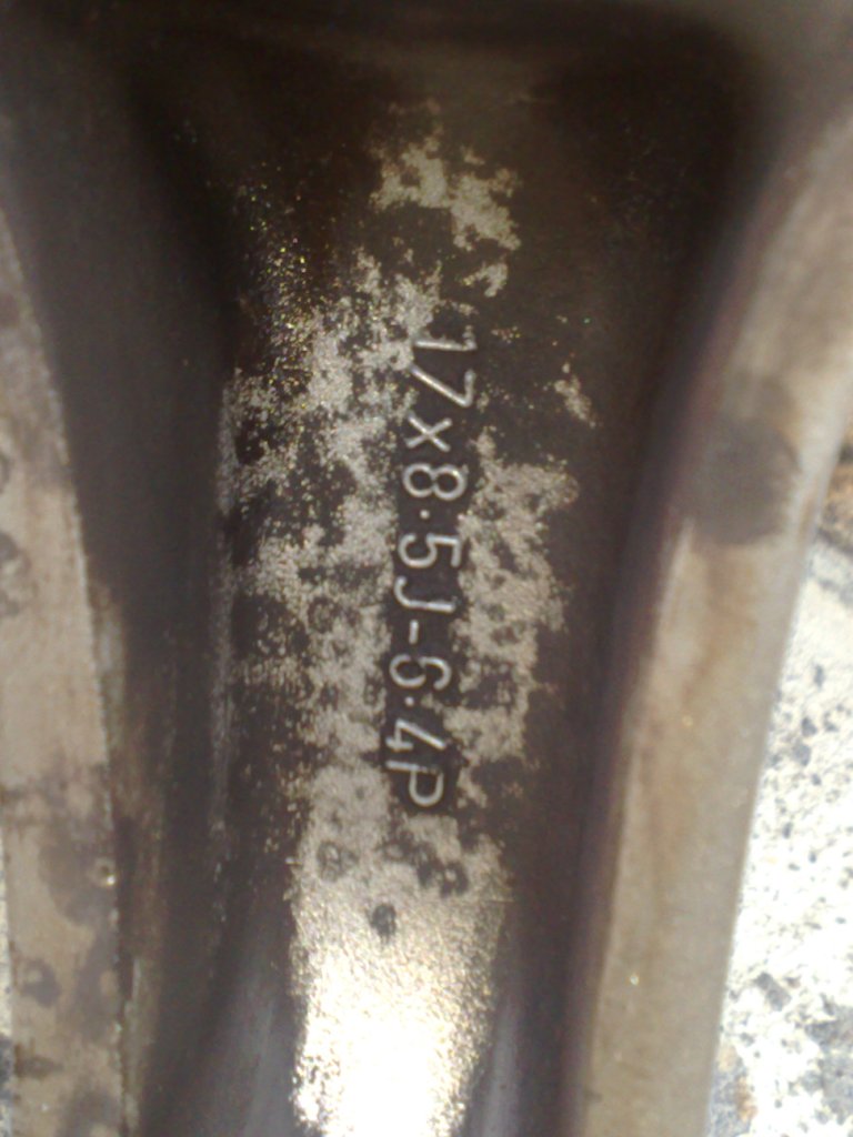 Dimension size : 17x 8.5 J-6.4P. Tyres arn't the best. PM for more details