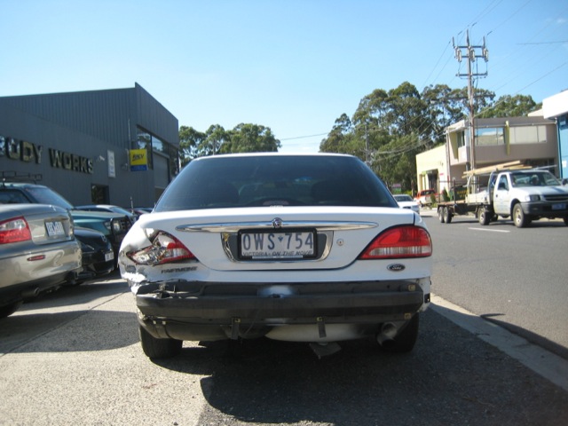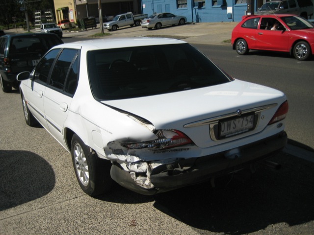 Wouldnt waste my time. Id guess at at least a 2 grand bill for the panel work. My EL parts car has a shunt in exactly the same place but not as bad and it has a bend in front of the wheel arch and has all sorts of broken and busted s**t underneath. Unless you can get all the bits dirt cheap or another car to strip, have a friendly panel beater that doesnt mind pulling it all straight for next to nothen as well as the paint, then consider it a write off. Get another one thats straight and put all the Fairmont bits in it. Quote to fix mine was well over 2k.