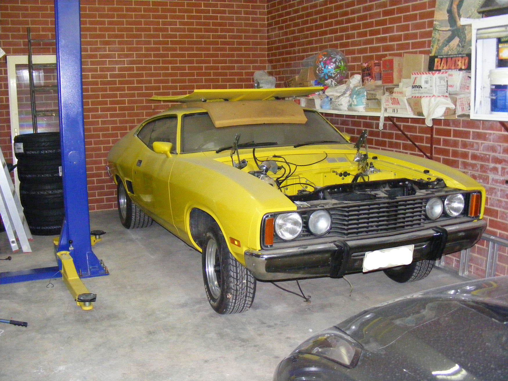 I just came across this. http://forum.streetfords.com.au/showthread.php?t=2608 All in all the standard turbo/manifold will be a tight fit but does appear do-able although the guy in this thread gave up on it. The pics also don't show the steering box so that's still a big question mark. I need to do some more research and getting up to speed on what sort of power figures I can expect with different manifolds/turbos and if I could achieve 450-500KW with a GT35/40 turbo AND log manifold I would be a very happy little vegemite! As it stands I have a very good exhaust fabricator available to me here in Adelaide and ultimately if it came to that I would get him to make me a custom manifold with external wastegate and the turbo mounted forward of the shock tower as you've suggested where there is an abundance of room. Every time I look in that engine bay I curse that awkwardly placed recirculating ball steering box. Wonder how much more room I'd get with the RRS rack and pinion kit? Alternatively I could rely on the fact there's heaps of headroom under the bonnet of the XC due to its high bonnet line and go a high mount turbo. But wouldn't it be so nice to be able to just buy something off the shelf..... I just wish I wasn't the trail blazer here and could rely on other people's experience! Been there done that with the first street legal 460 into XC conversion here in Adelaide in 1988 and this time around I'm time poor compared with back when I was a 21 year old with nothing else to do except work on my car...... I will get onto the pics but I can assure that they wouldn't be that exciting at this point. They'll consist of a dusty XC Coupe with no engine and a 4.0 litre long motor sitting on the floor next to it! |