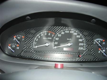 {USERNAME} wrote: If anyone has worked out how to illuminate the needles when changing to blue back lighting please enlighten me. I put blue LED's in my missus' AU I and solved the issue of the red needles not illuminating by 'carefully' scratching off the red paint with a utility knife blade. You just need to hold each needle so you don't bend or snap it as you go. Angle the blade at about 45%-60% and DRAG it - don't push it along. The red coating comes off quite easy and the needles look great illuminated in vivid blue to match the display. I put the led's in a few months ago and still going strong (got them in a pack of 10 for about $2.99 incl postage on ebay) (Incidentally, I covered the speedo fascia with Carbon Fibre vinyl while I had the lense off - mainly to hide that bloody annoying blinking coolant level warning light that doesn't go away even with a new $80 coolant level switch installed Attachment: Attachment: