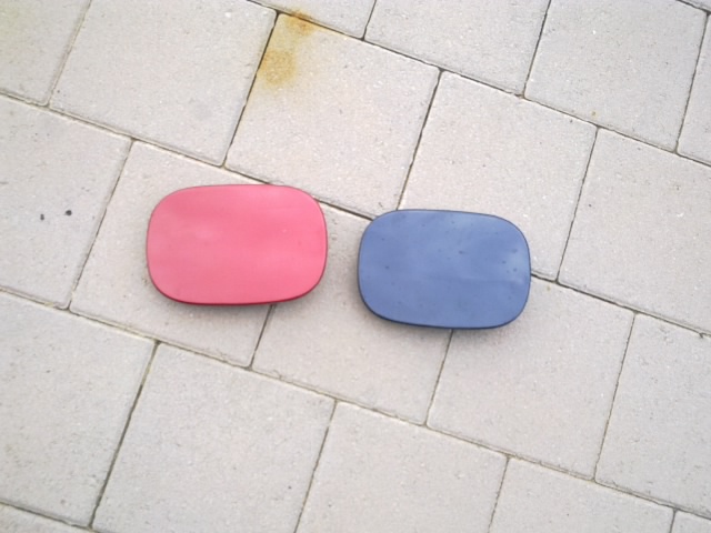 File comment: Tank lids, C2 regency red and N9 blue metallic. - 20 dollars each