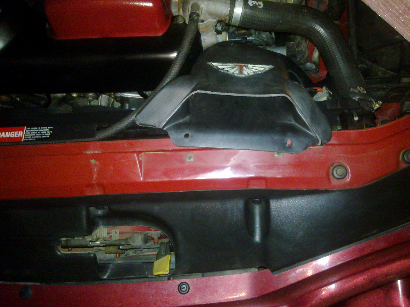 i was looking to update the look with a tickford badge on it if i line up the bottom with the air box it dosent reach over the fans and sit on the support rail and if i line up the top where you screw it down to the rail its about 2 inches further back then air box ill go get some pics