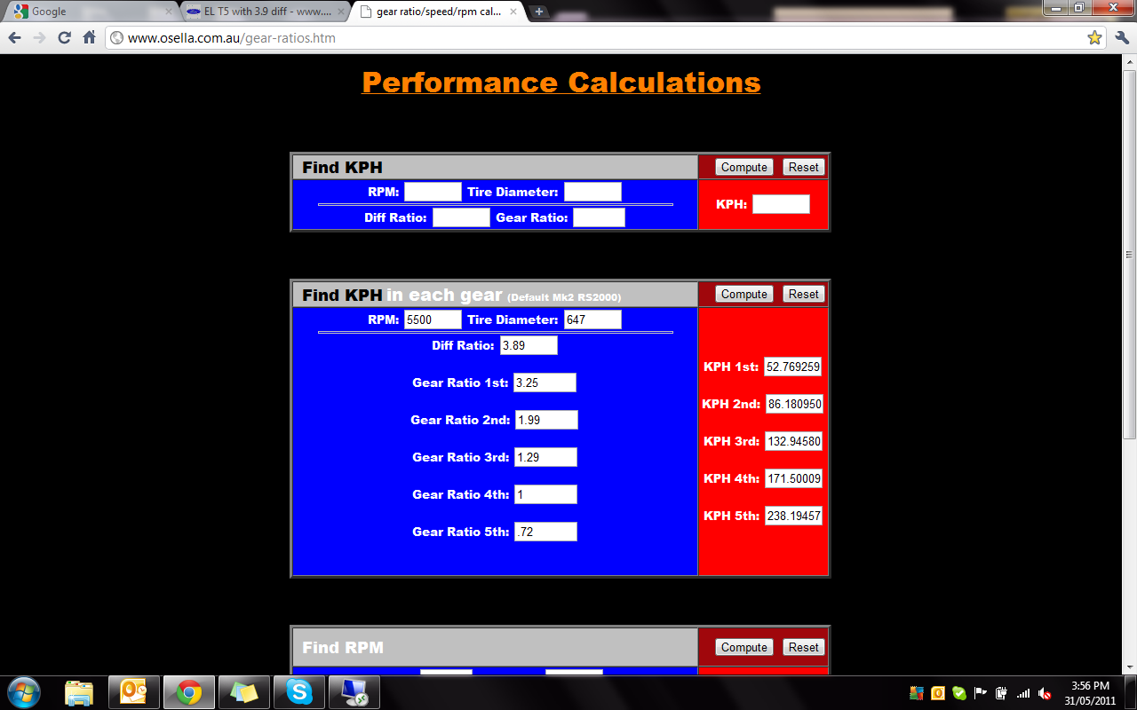 Use this calc to work out rpms & speed with any diff ratio along with any gear ratio
