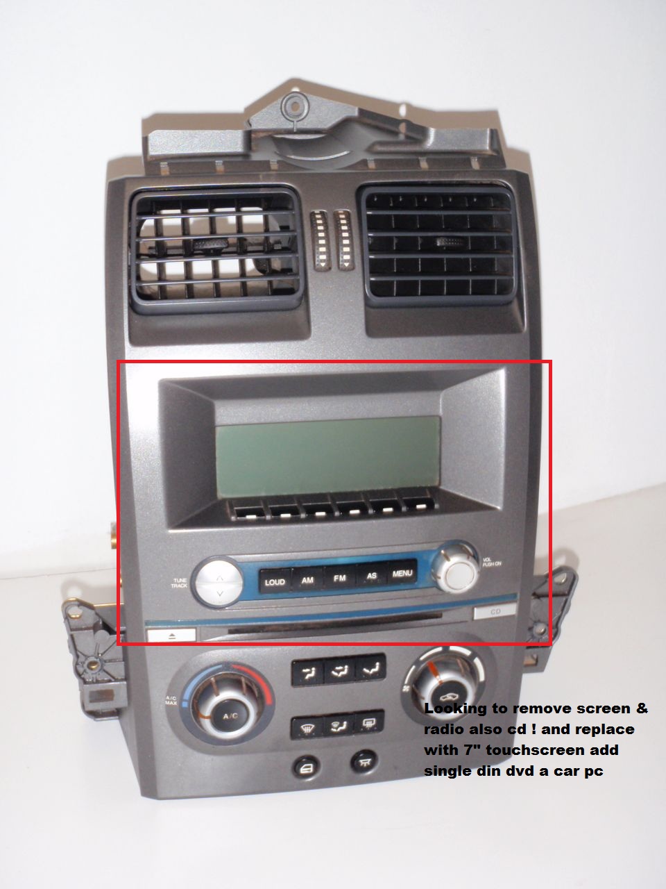 and adding a 7" touchscreen , with a single din dvd below the Ac button , in a aftermarket Fascia