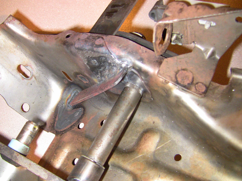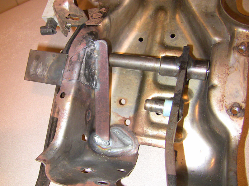 Ripped the pedal box out yesterday and TIGed a piece of metal @ 90º over the rear of the pin that leads to the front of the box. This was welded both sides of the plate and pin. This SHOULD give it quit a bit of strength that hopefully outlasts the vehicle. She is a TOTALLY different vehicle to drive now, Im completely stoked!