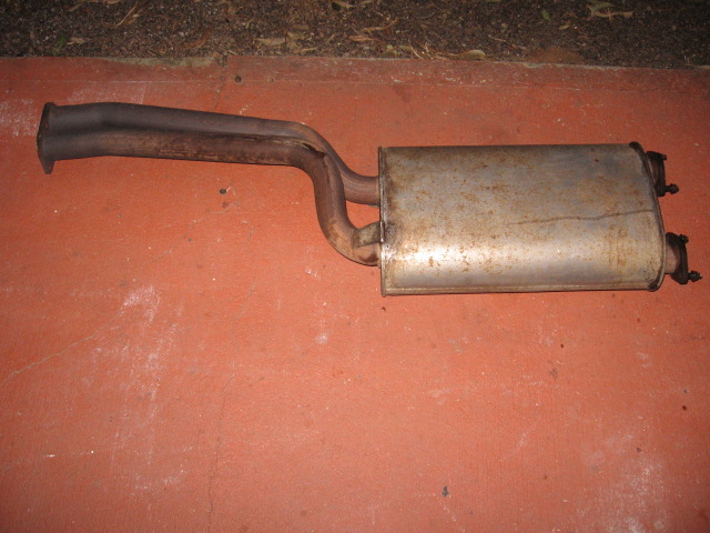 This exhaust came off my Ute and I was told that it was only about 2 to 3 years old when I removed it 2 months ago. It is a standard factory unit so it is quiet on idle but does give a bit of a note under acceleration. It is in good condition with no crack, splits or loose bits in the mufflers. I removed it to install a stainless system. Does not include the cats or extractors, just the mid section and the tail pipes with the chrome end tips.