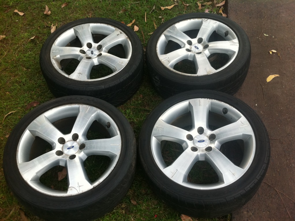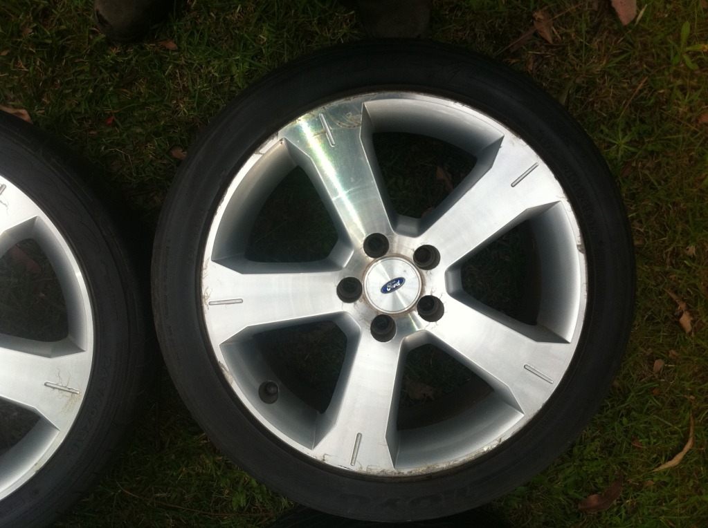 Up for sale is four 18 inch xr8 wheels, the have some gutter rash and a few scratches but they still look good, two tires with 50 percent tread and two need replacing! $350 ono