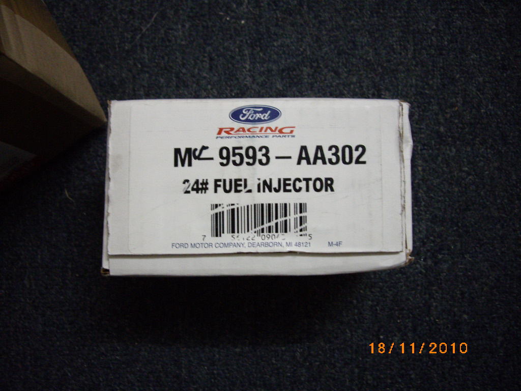 I bought a new set of Ford Motorsport injectors, they are 24 lb/hr instead of 18 like the std ones are, so I got 8 in a box from Hume Performance.