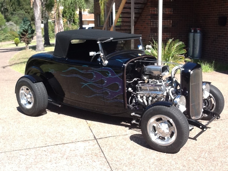 Ford 1932 highboy roadster,all ford driveline,302windsor,straight Lp gas,alloy heads ,alloy radiator,electric water pump,extractors,alloy sump, gas cam,C4 auto,9inch diff,4wheel disc brakes,four bar front&rear,leather seats,billet B&M shifter,full NSW reg,engineering cert,$54k,cheapest 32 roadster around,any more info ph Peter on 0455127542.