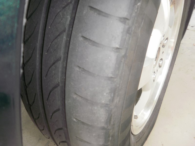 Here are the photos of Front drivers side and passenger side tyres...tread is worn and still wearing out at the edge.