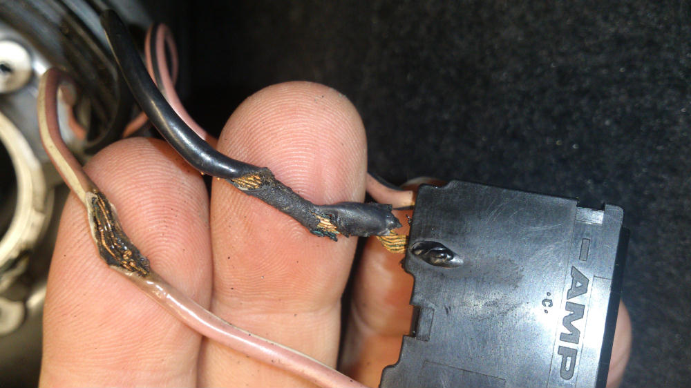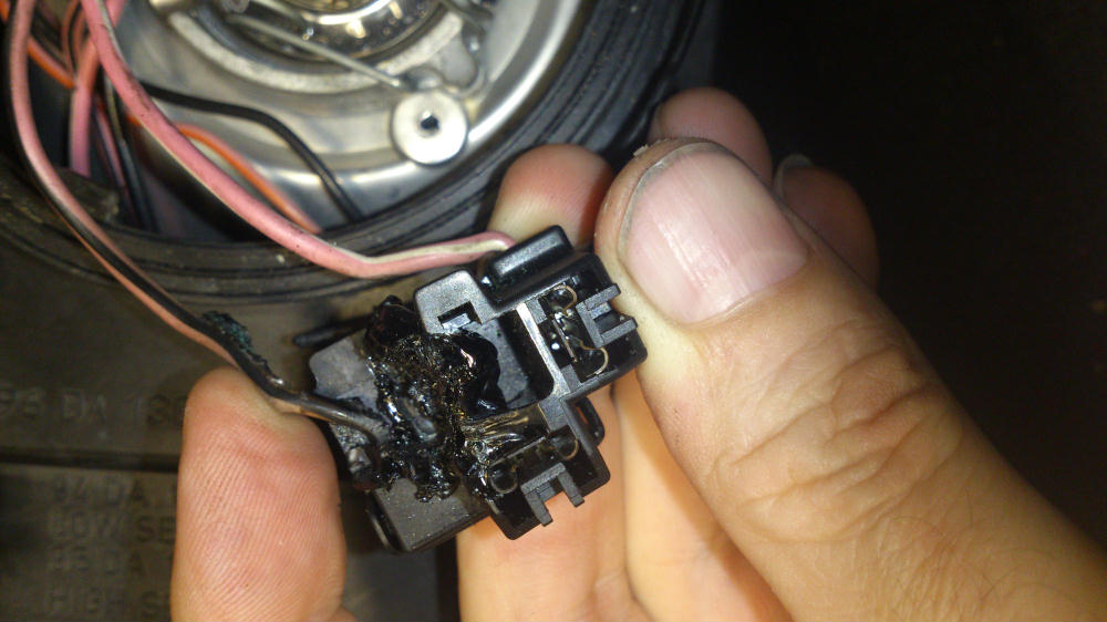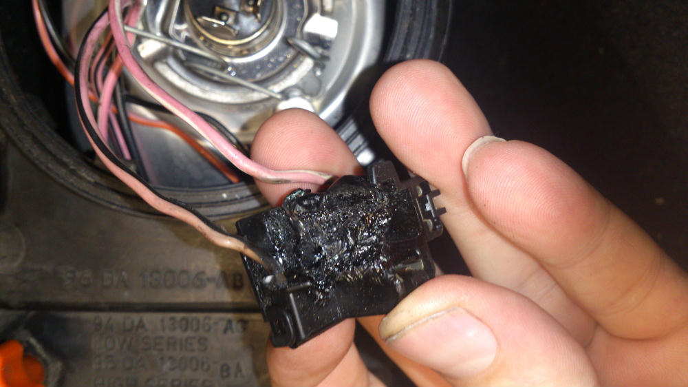 File comment: Melted loom connector, headlight side.